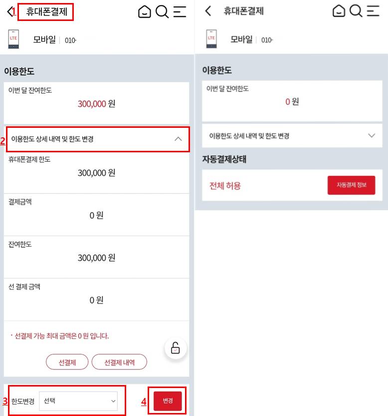 - 소액결제 한도 0원 설정